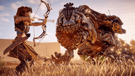 Altre protagoniste di Horizon sono senza dubbio le macchine, creature dotate di un concept design simile a quello degli animali: attaccano in modo credibile (a differenza dei nemici umani, dotati di una IA debole) seguendo il loro “istinto selvaggio” che, paradossalmente va a contrastare con la loro natura robotica. Esse potranno essere distrutte grazie all’ampio ventaglio di armi elementali a nostra disposizione, che dovranno essere scelte con cura per poter sfruttare a pieno le debolezze di ciascuna macchina. Per quanto riguarda gli aspetti più propriamente ludici, si può constatare che Horizon è a tutti gli effetti un ottimo action RPG: il combat system basato sulle lunghe distanze costituisce la qualità che meglio eccelle in termini di gameplay. La nota di demerito è dedicata al combattimento in mischia: marginale, frustrante e totalmente impreciso, tanto da dar vita, in più di qualche occasione, a compenetrazioni fisiche della protagonista in elementi grafici. Altri difetti riscontrati sono inerenti a delle imperfezioni di Lip Sync e carenza nell’espressività nei volti.
